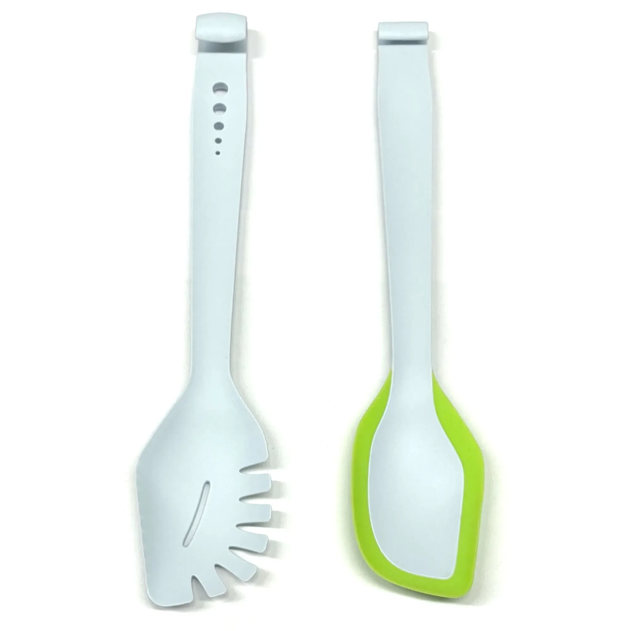 Dieser vielseitige 5-in-1 Küchenhelfer vereint mehrere Funktionen in einem praktischen Werkzeug. Er lässt sich als Salat- und Servierbesteck, Spaghetti- und Nudelzange sowie als Teigschaber verwenden – ideal für den täglichen Einsatz in der Küche.