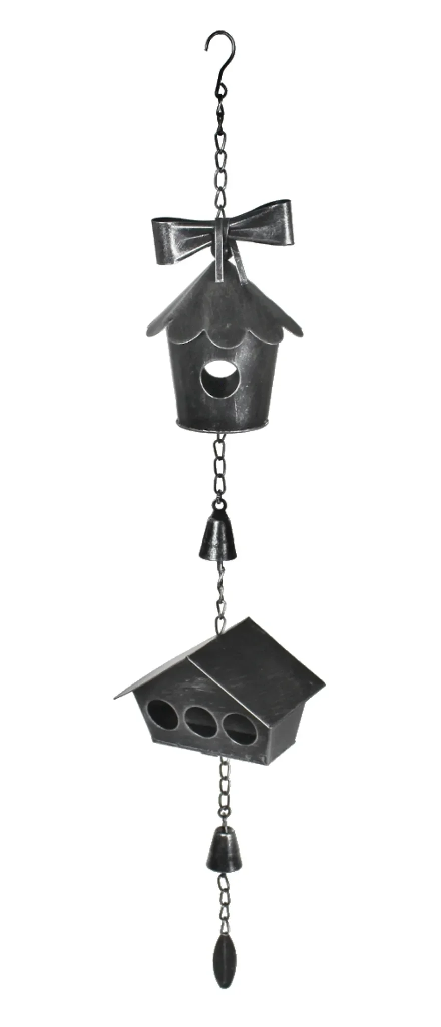Dekorativer Hänger in Form eines Vogelhauses aus Metall. Perfekt zum Aufhängen an Wand, Balkon oder Garten. Stil im Used-/Shabby-Look in den Farben Schwarz/Silber. Vielseitig einsetzbar drinnen und draußen.