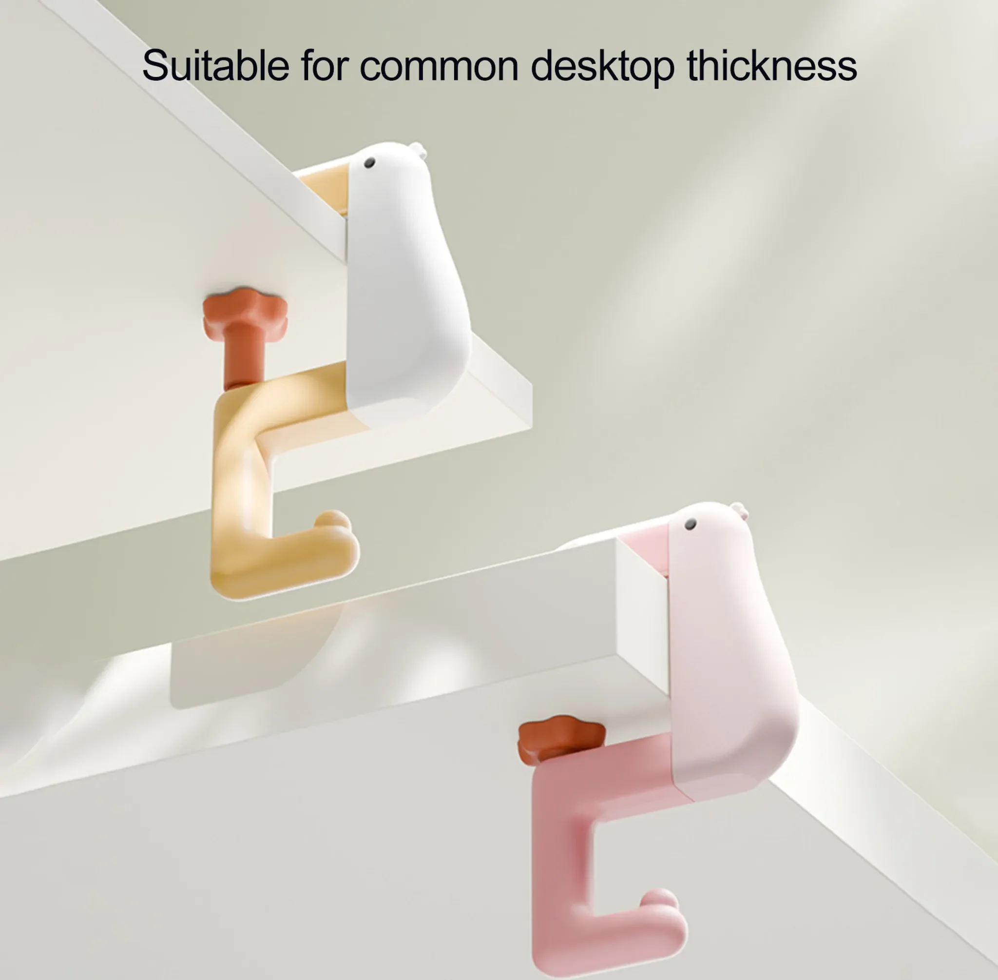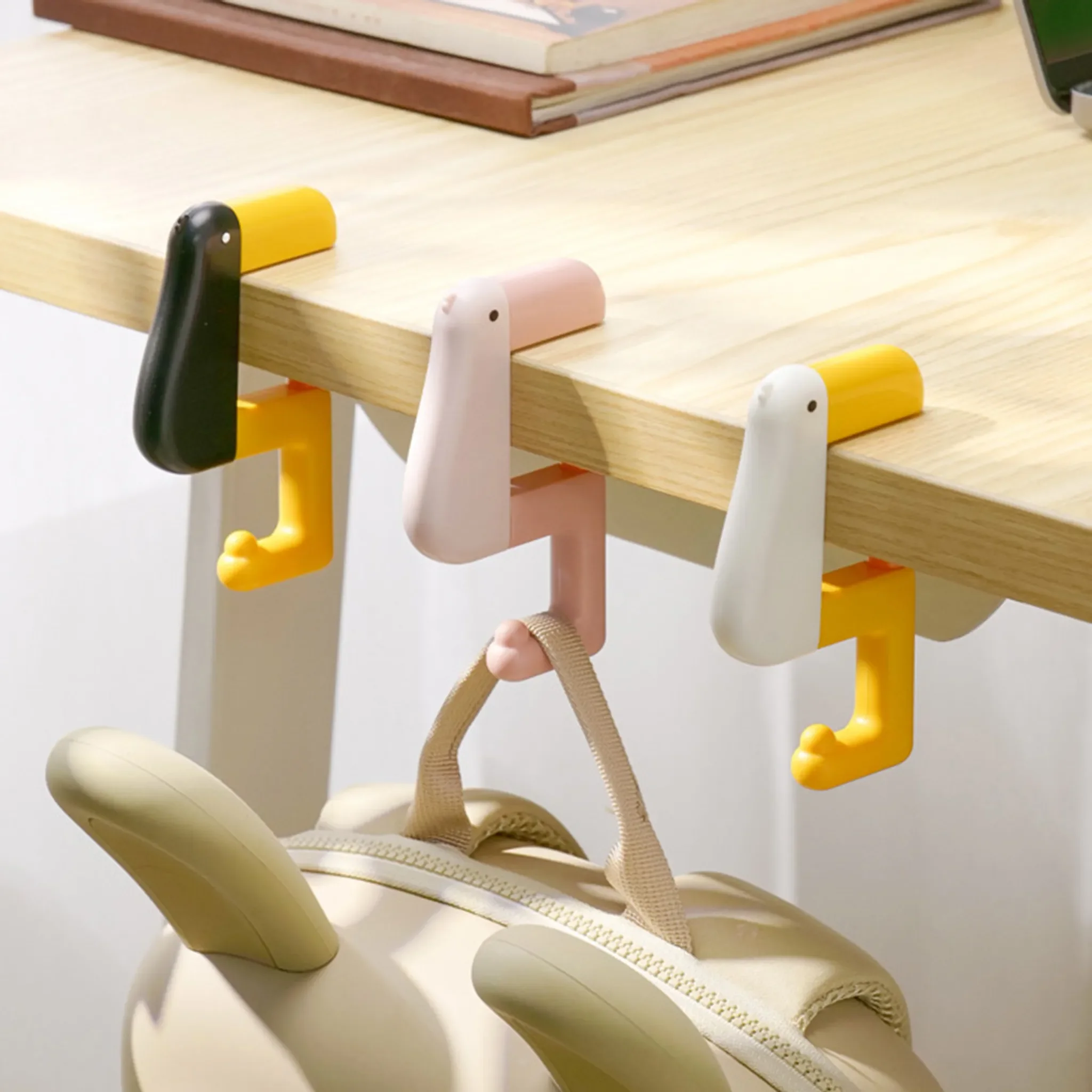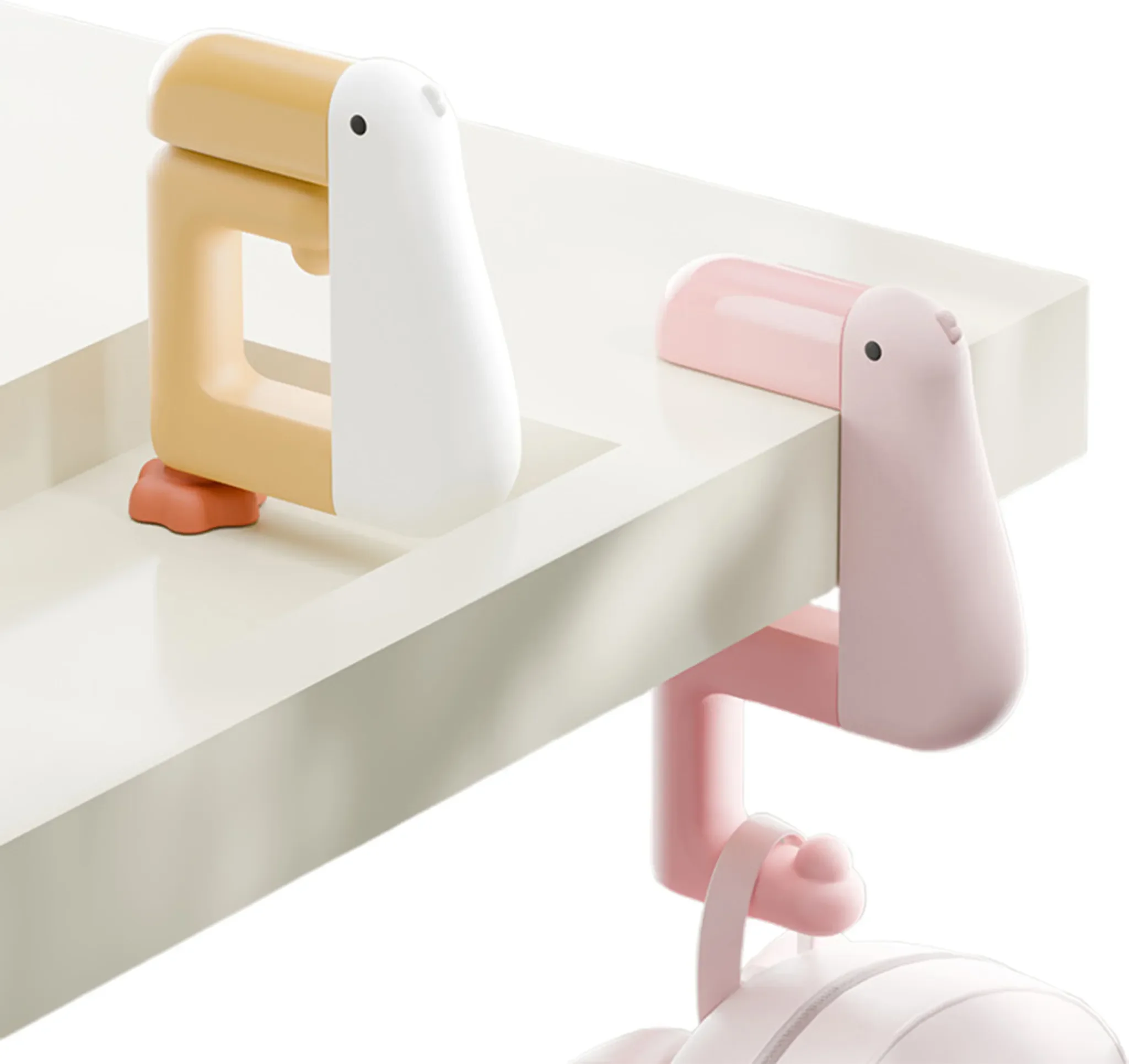 Integrierte Gummipads schützen Tischplatten und Oberflächen zuverlässig vor Kratzern. Das charmante Cartoon-Enten-Design verleiht dem Haken eine moderne, verspielte Optik und macht ihn zugleich zu einem dekorativen Hingucker.