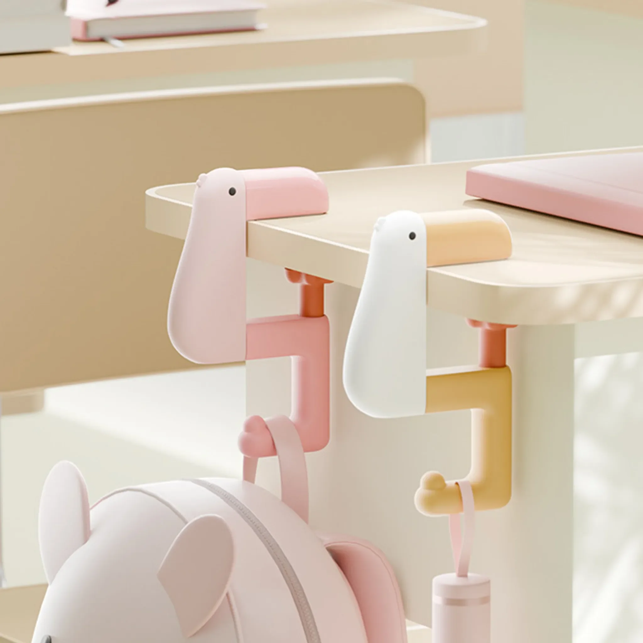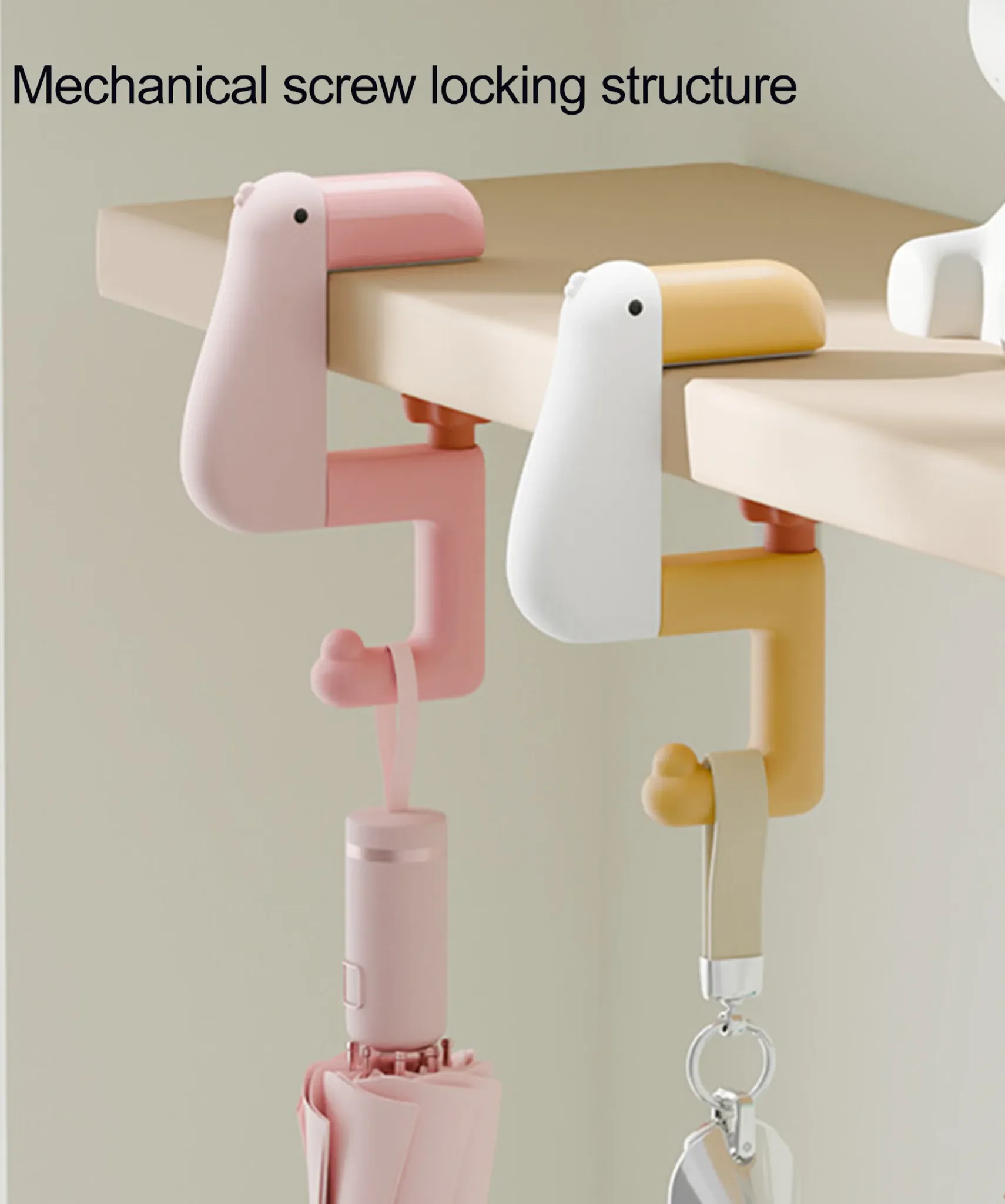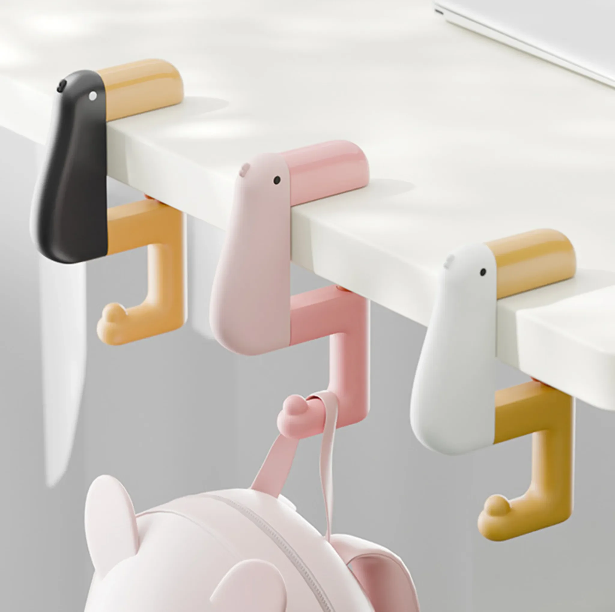 Integrierte Gummipads schützen Tischplatten und Oberflächen zuverlässig vor Kratzern. Das charmante Cartoon-Enten-Design verleiht dem Haken eine moderne, verspielte Optik und macht ihn zugleich zu einem dekorativen Hingucker.