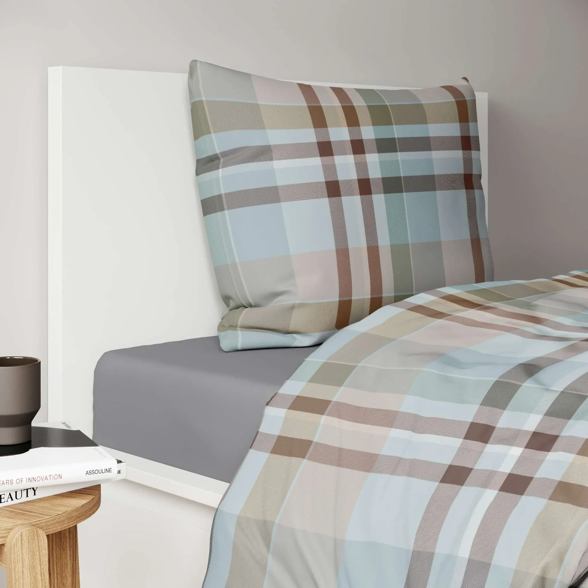 Flanell-Kopfkissenbezug 40×80 cm – Urban Flausch, kariert Blau