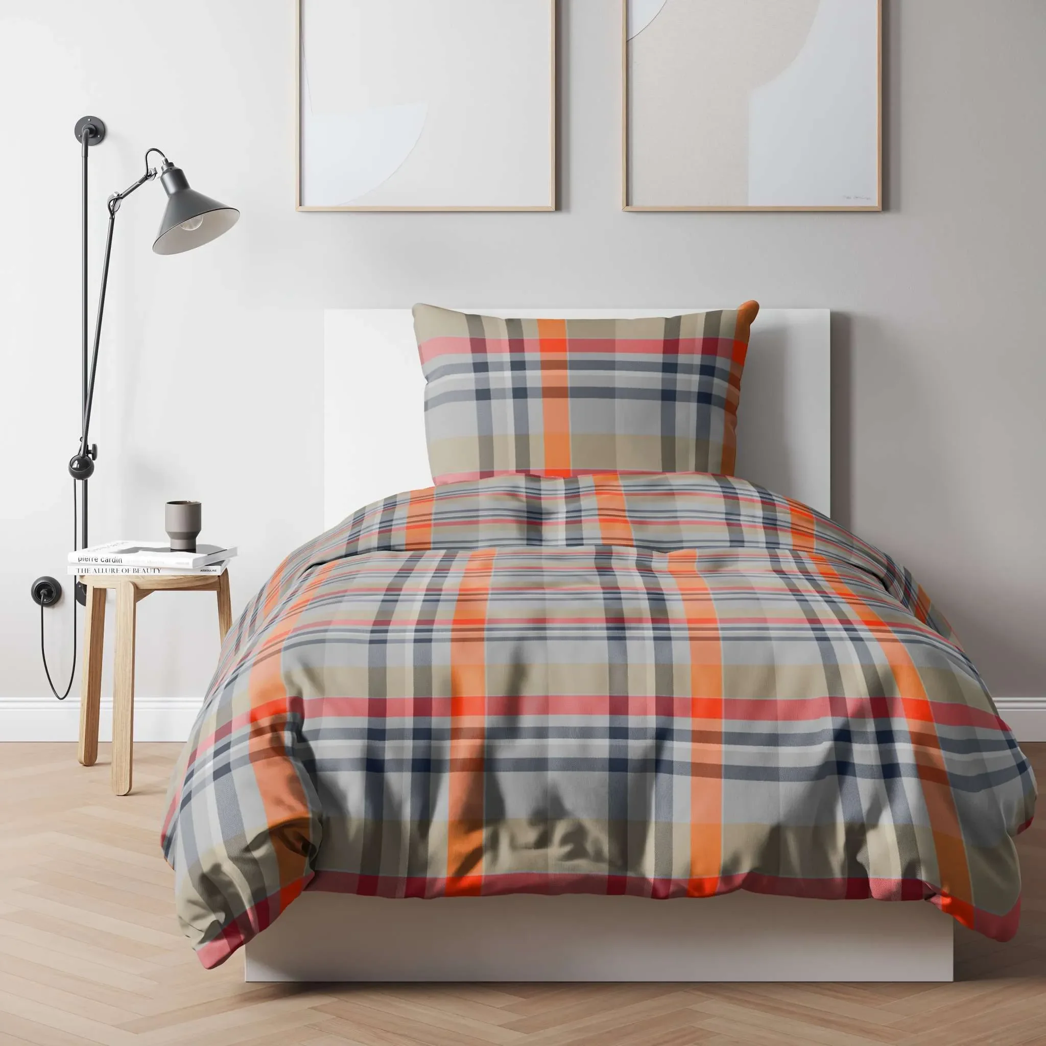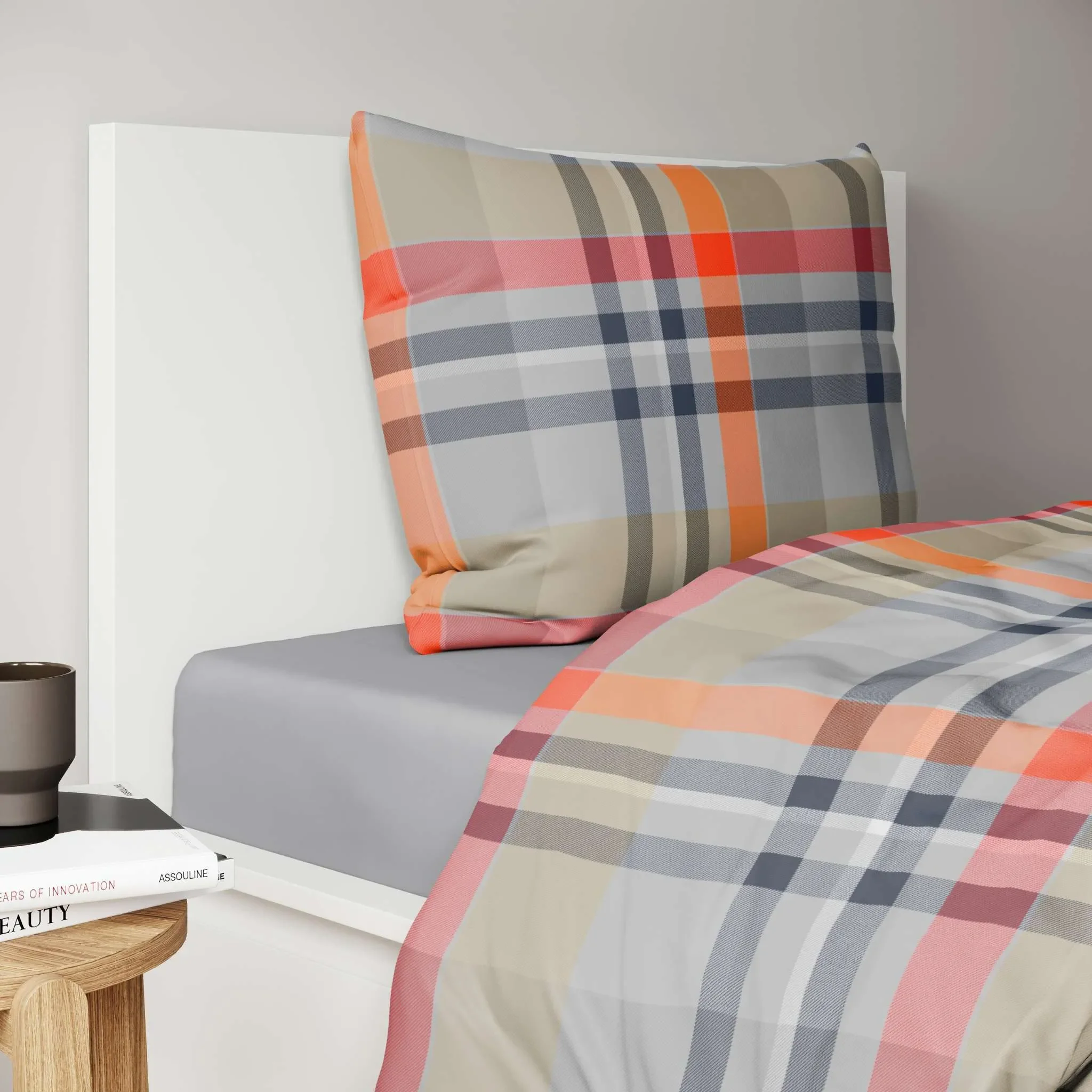 Flanell-Kopfkissenbezug 40×80 cm – Urban Flausch, kariert Orange