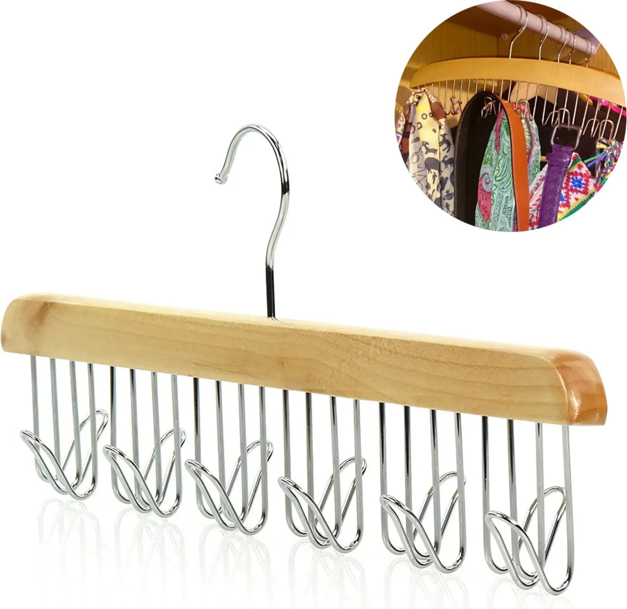Gürtel- & Krawattenhalter aus Holz – 12 Haken, naturfarben