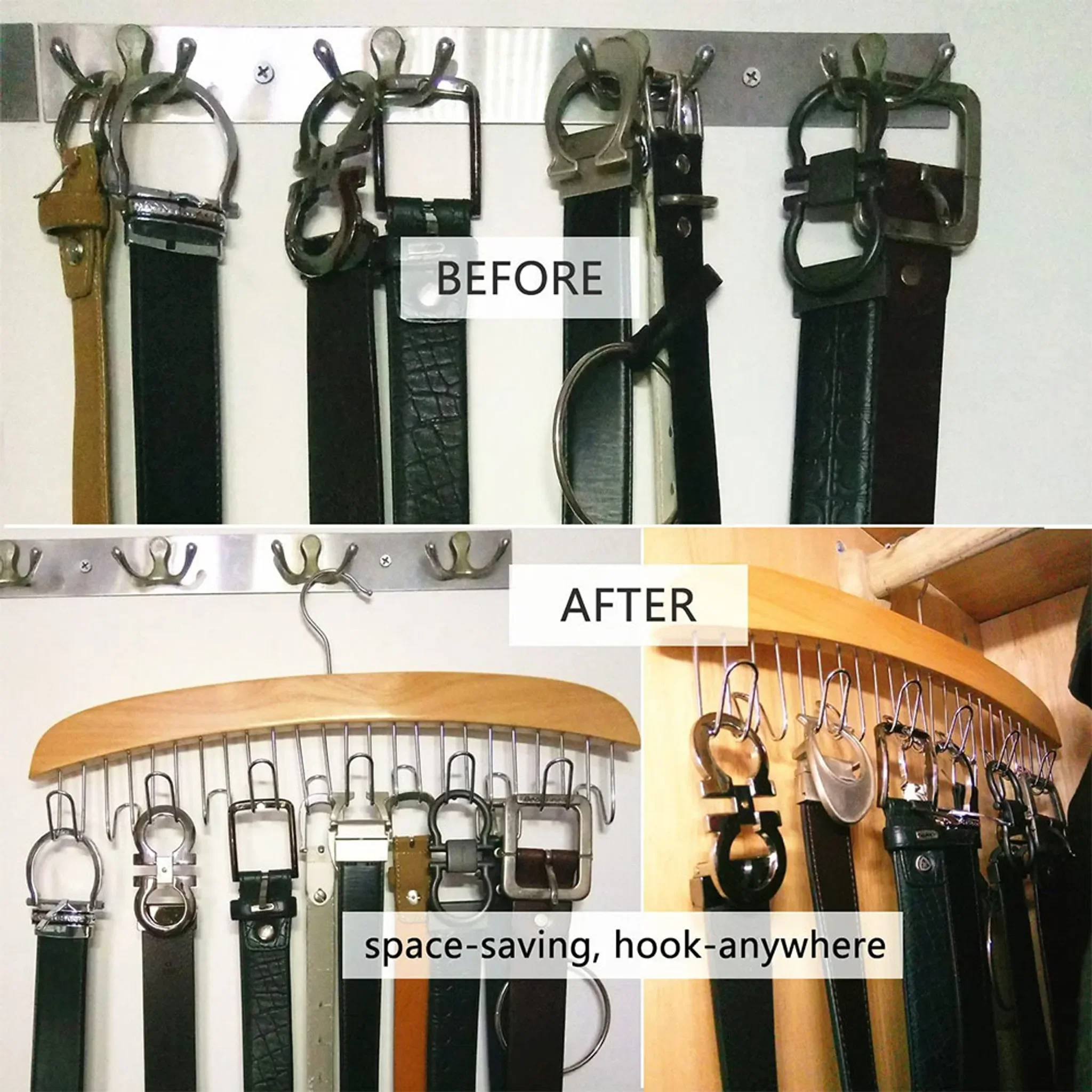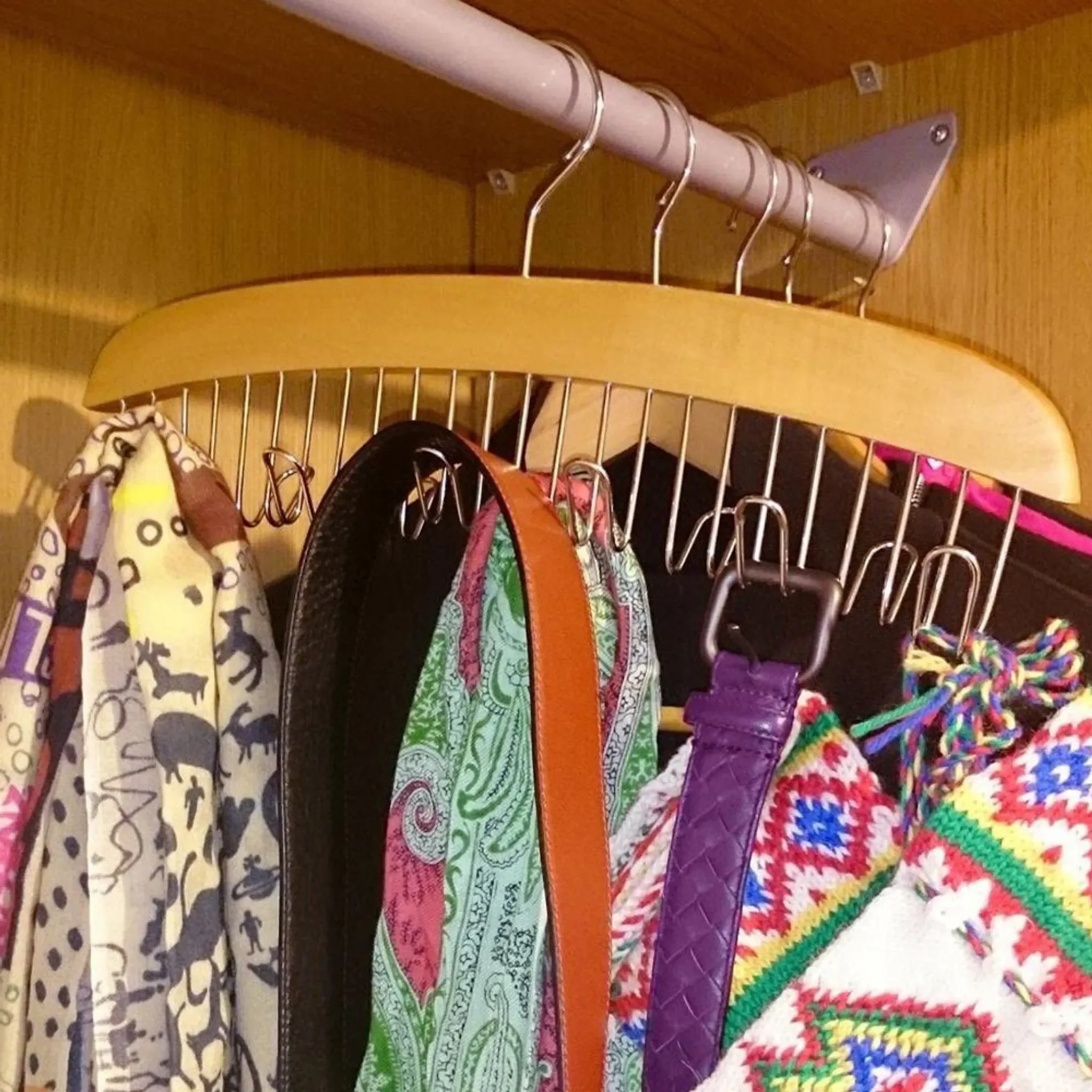 Dieser hochwertige Gürtel- und Krawattenhalter aus massivem Holz sorgt für Ordnung im Kleiderschrank und schafft schnell Übersicht. Mit 12 stabilen Haken lassen sich Gürtel, Krawatten, Schals oder Accessoires übersichtlich an einem Platz aufbewahren.