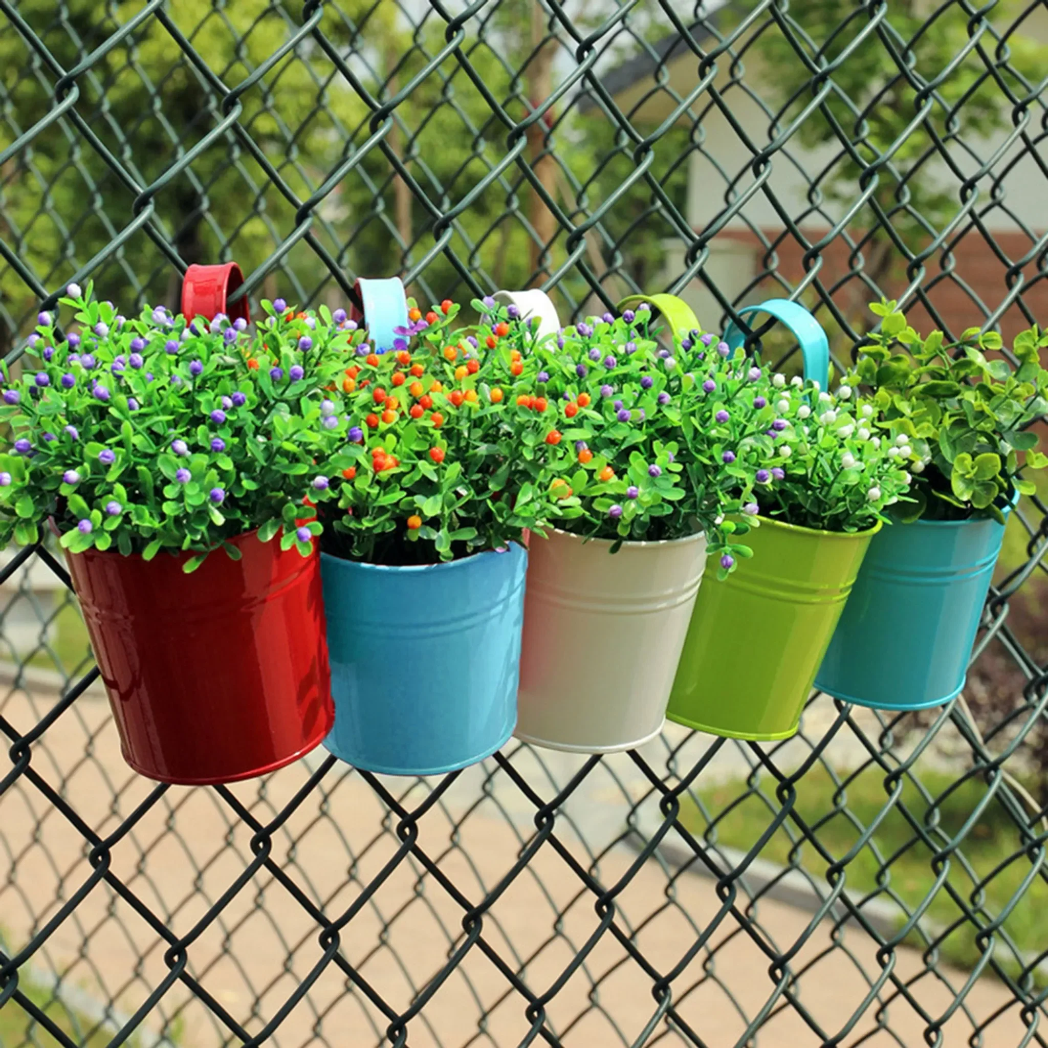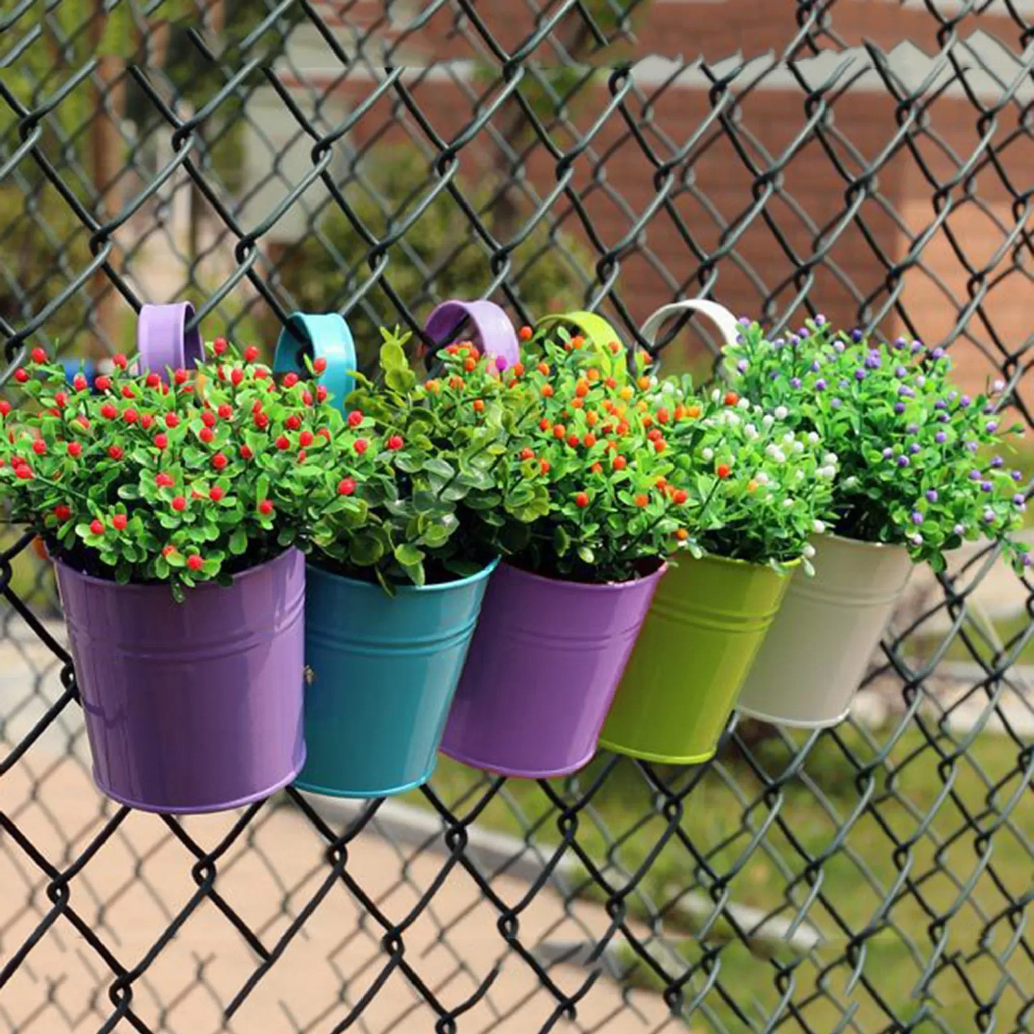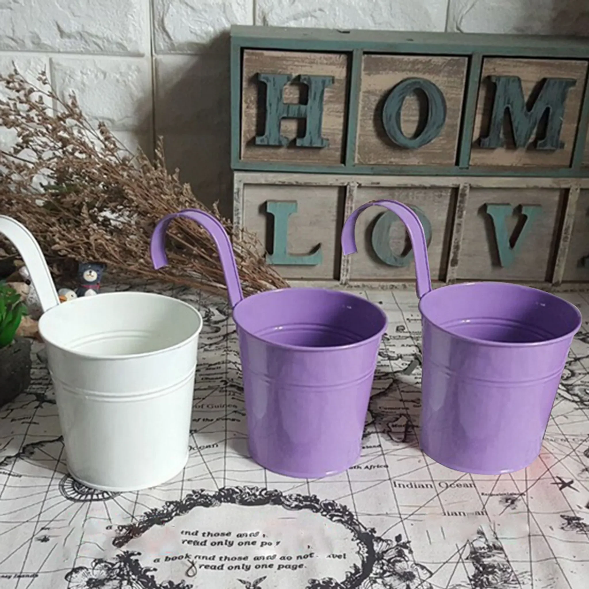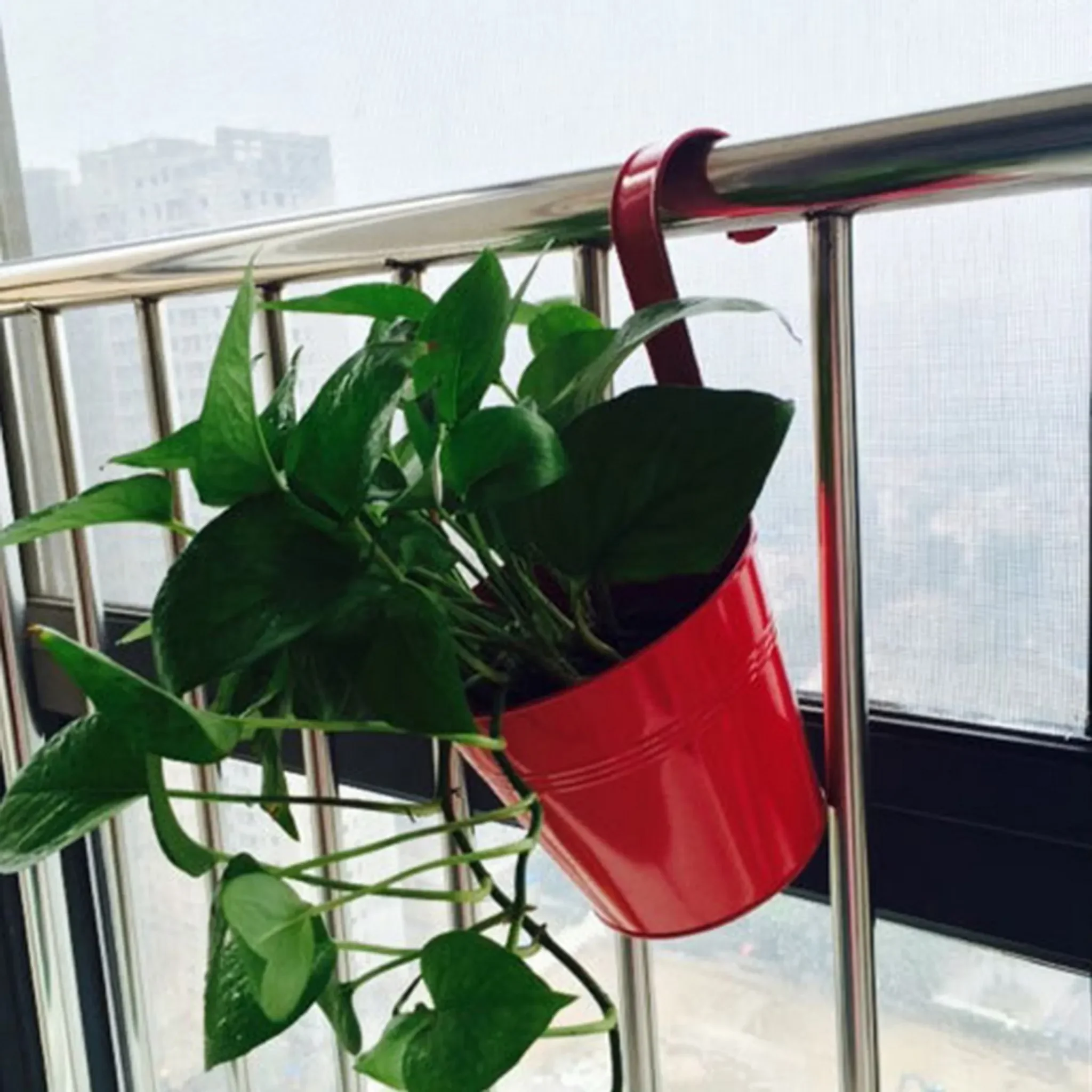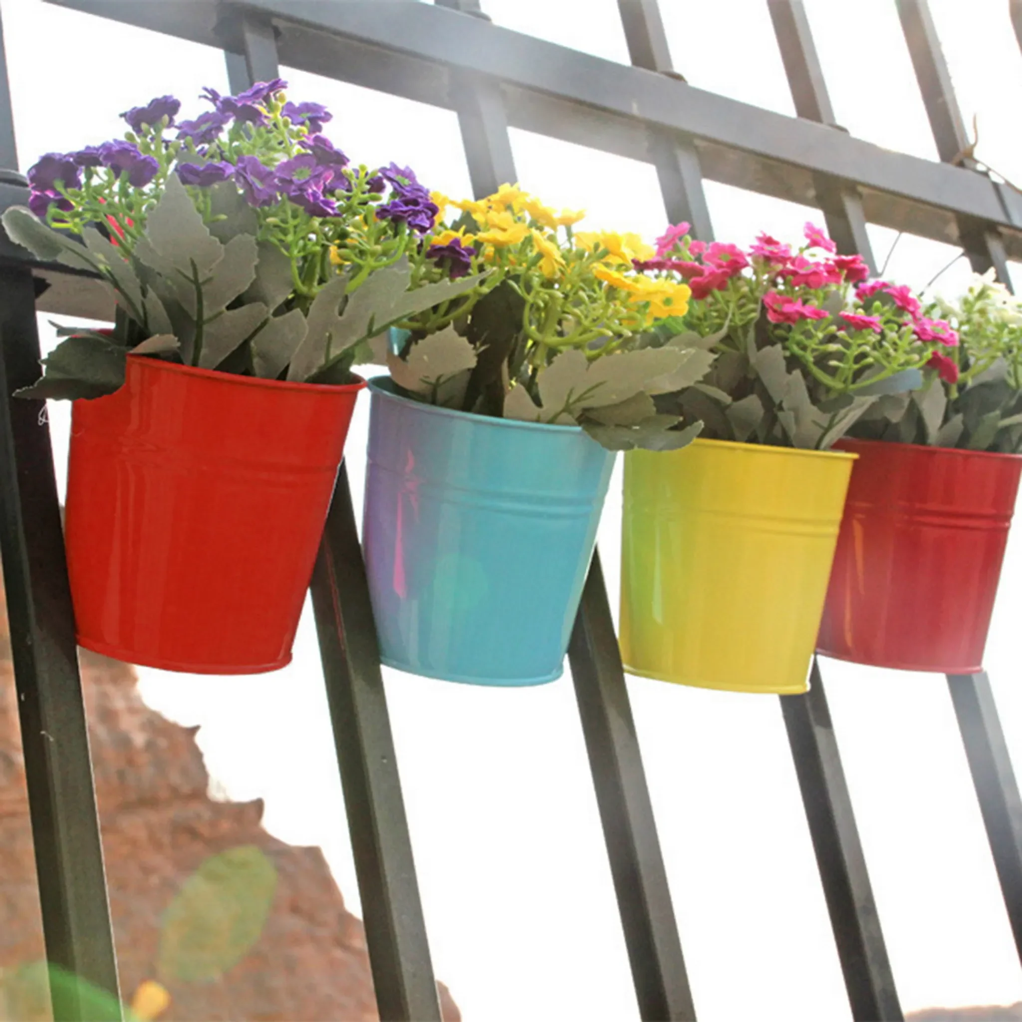 Hängender Blumenkübel aus haltbarem Eisen, ideal für Balkon, Fenster oder Geländer. Perfekt für kleine Topfpflanzen, getrocknete Blumen oder Seidenblumen. Auch als Desktop-Aufbewahrung für Stifte oder andere Kleinigkeiten nutzbar.