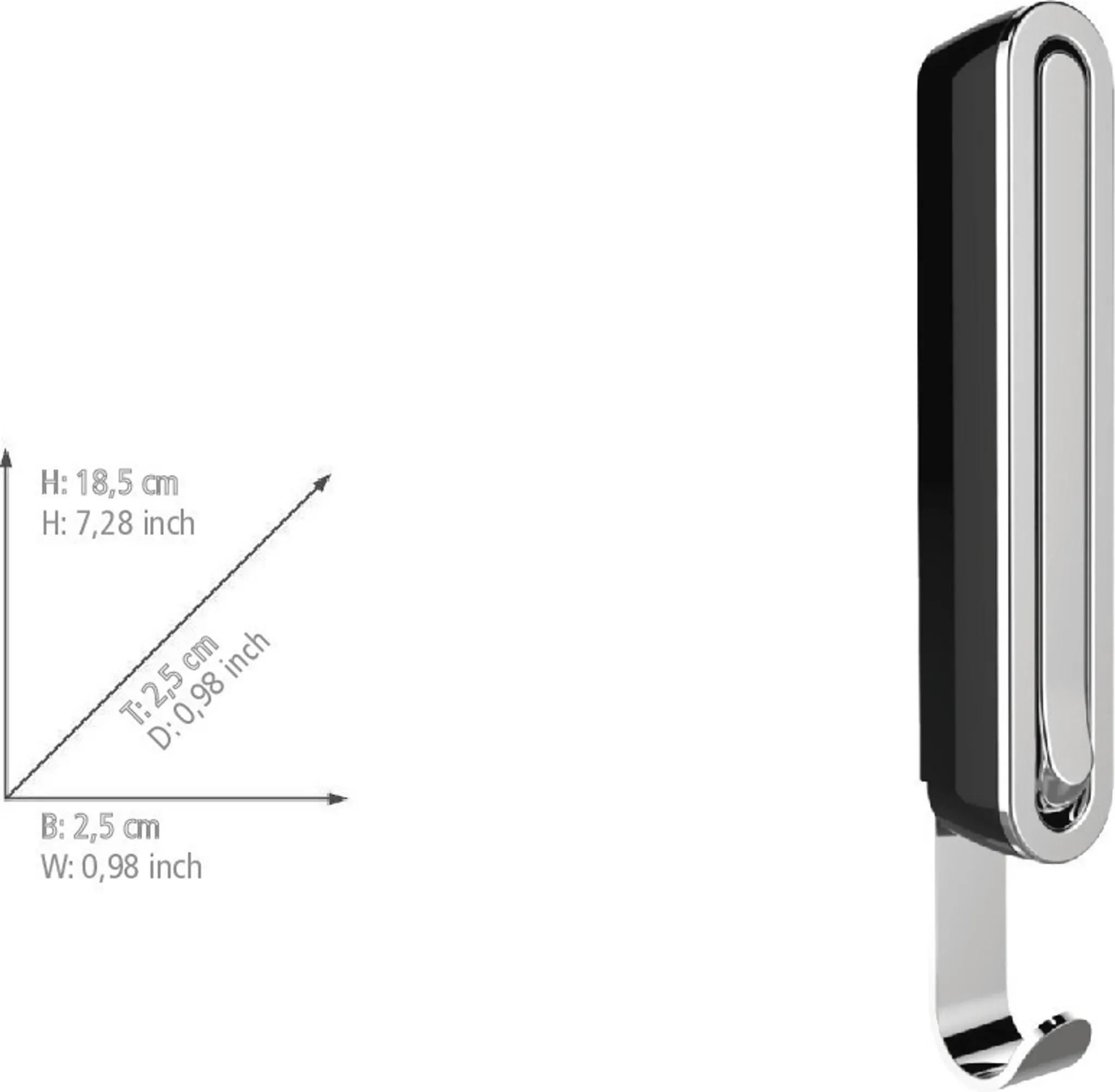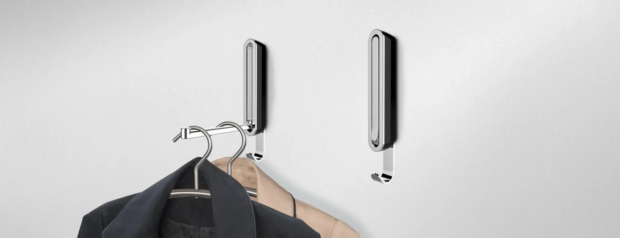 Der hochwertige, klappbare Wandhaken „SIGMA Black“ verbindet modernes Design mit durchdachter Funktionalität. Das stabile Kunststoffgehäuse in edlem Nachtschwarz wird durch einen robusten Metallhaken ergänzt und setzt stilvolle Akzente in jedem Wohnbereich.