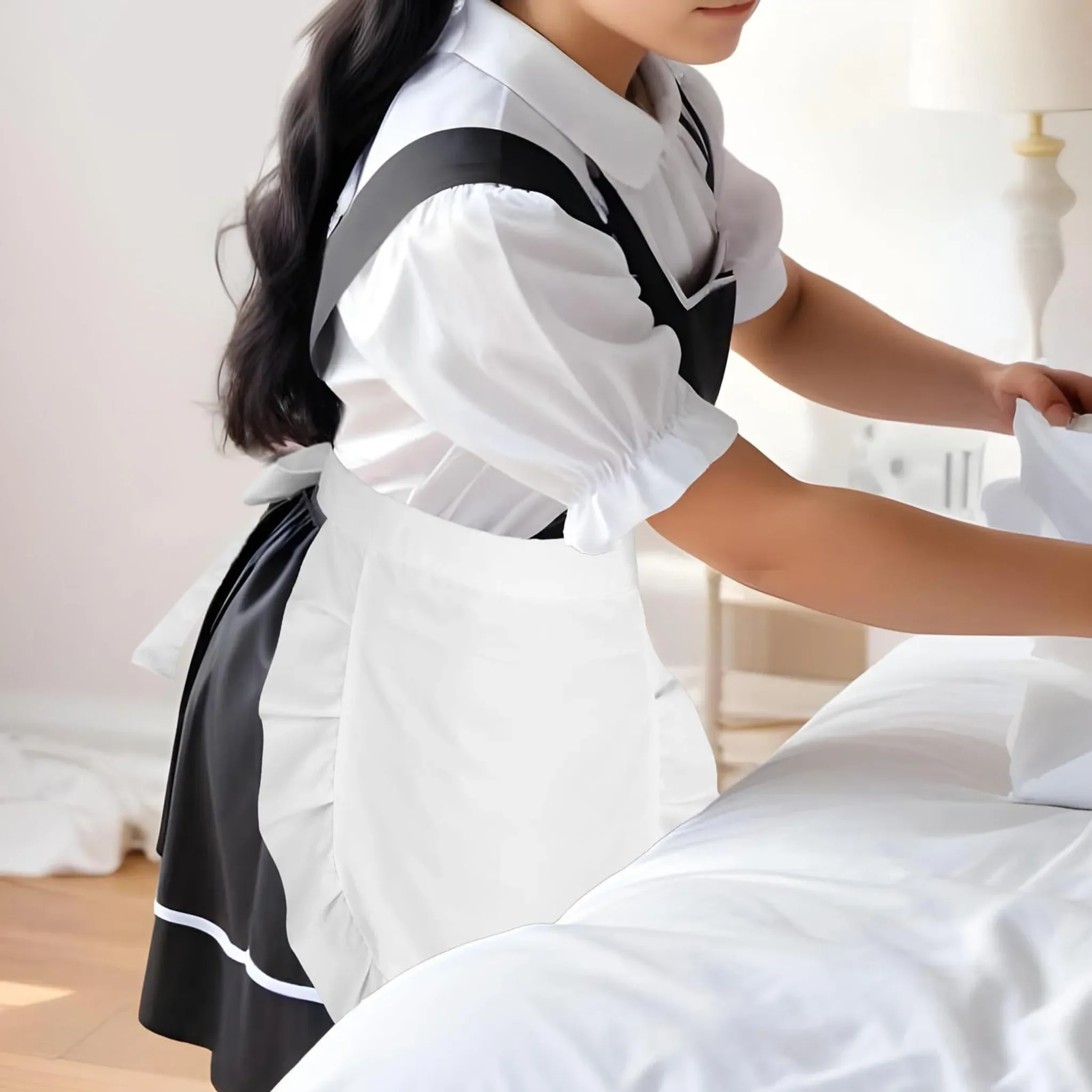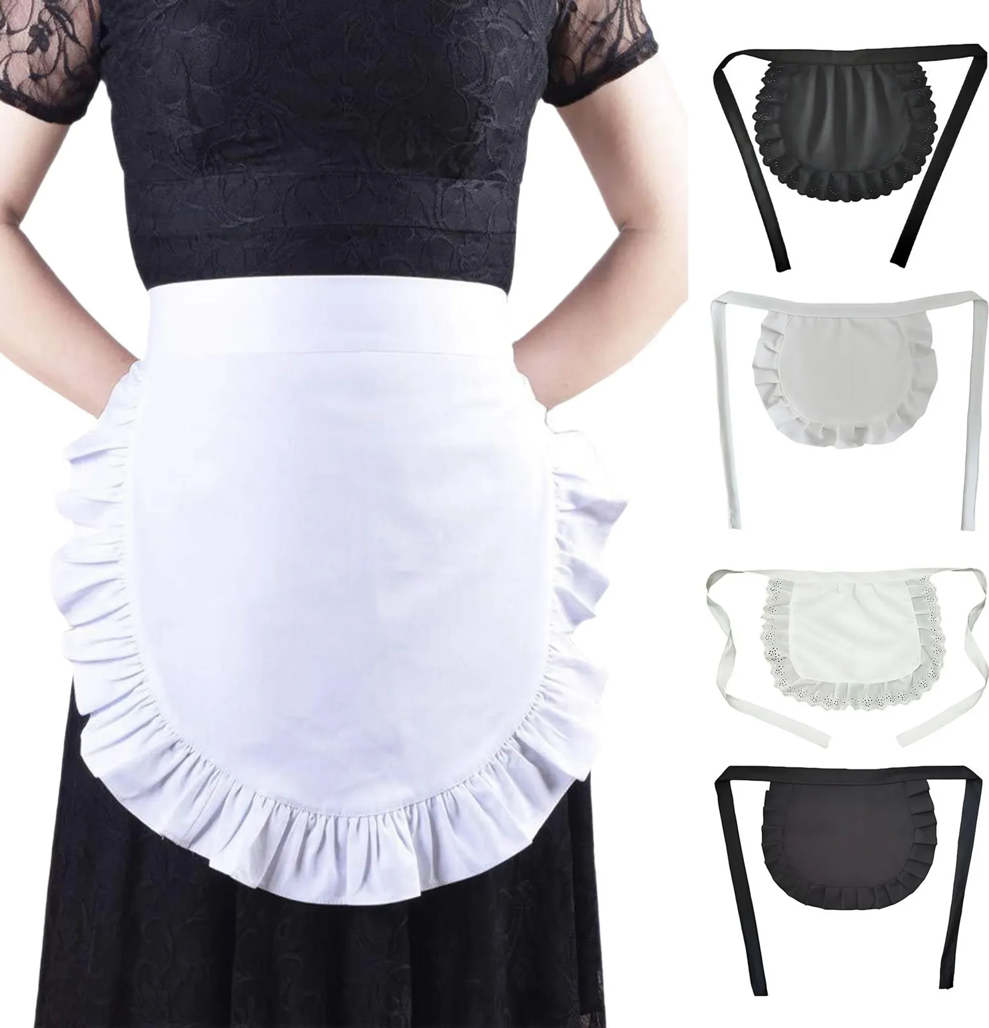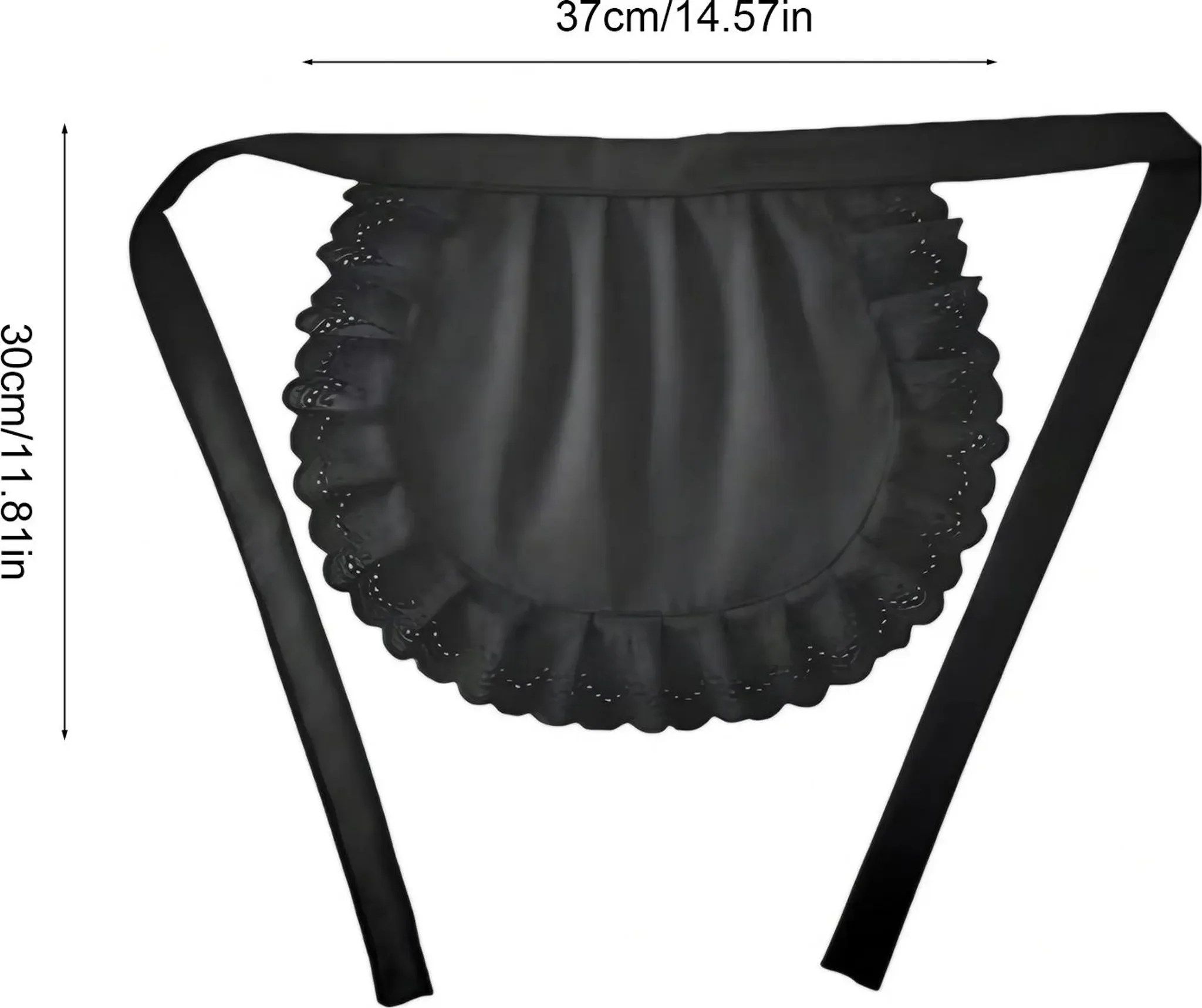 Diese Halbschürze im klassischen Maid-Design setzt stilvolle Akzente und verleiht Outfits einen charmanten, verspielten Look. Der feine Rüschenbesatz unterstreicht den eleganten Charakter und macht sie zum idealen Accessoire für Cosplay-Events, Mottopartys oder Halloween.