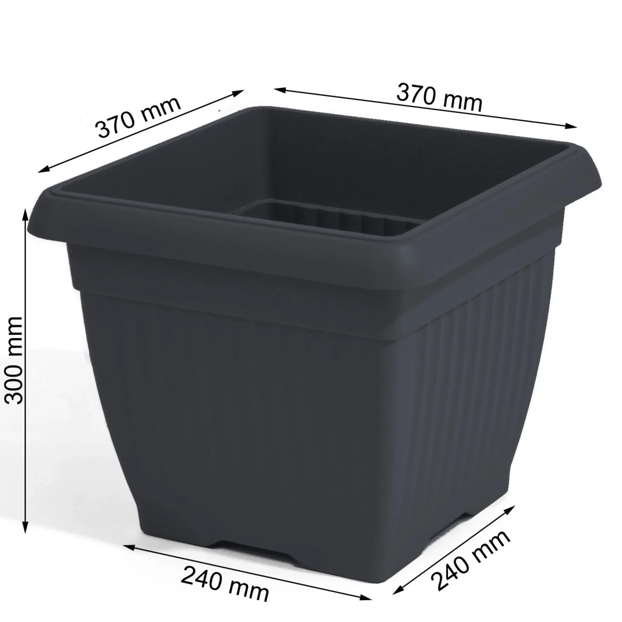 Quadratischer Blumentopf – 37 × 37 × 30 cm, 25,2 l, Anthrazit
