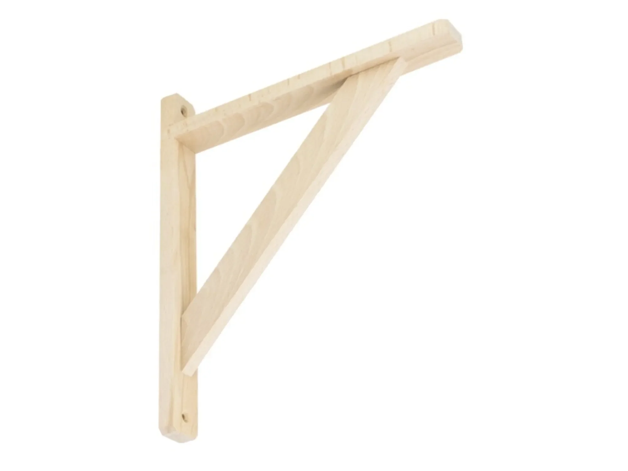Diese robuste Holzkonsole eignet sich ideal als Stützelement für Wandregale. Die verstärkte Ausführung sorgt für zuverlässigen Halt und eine gleichmäßige Lastverteilung – perfekt für Wohnräume, Küche oder Werkstatt.