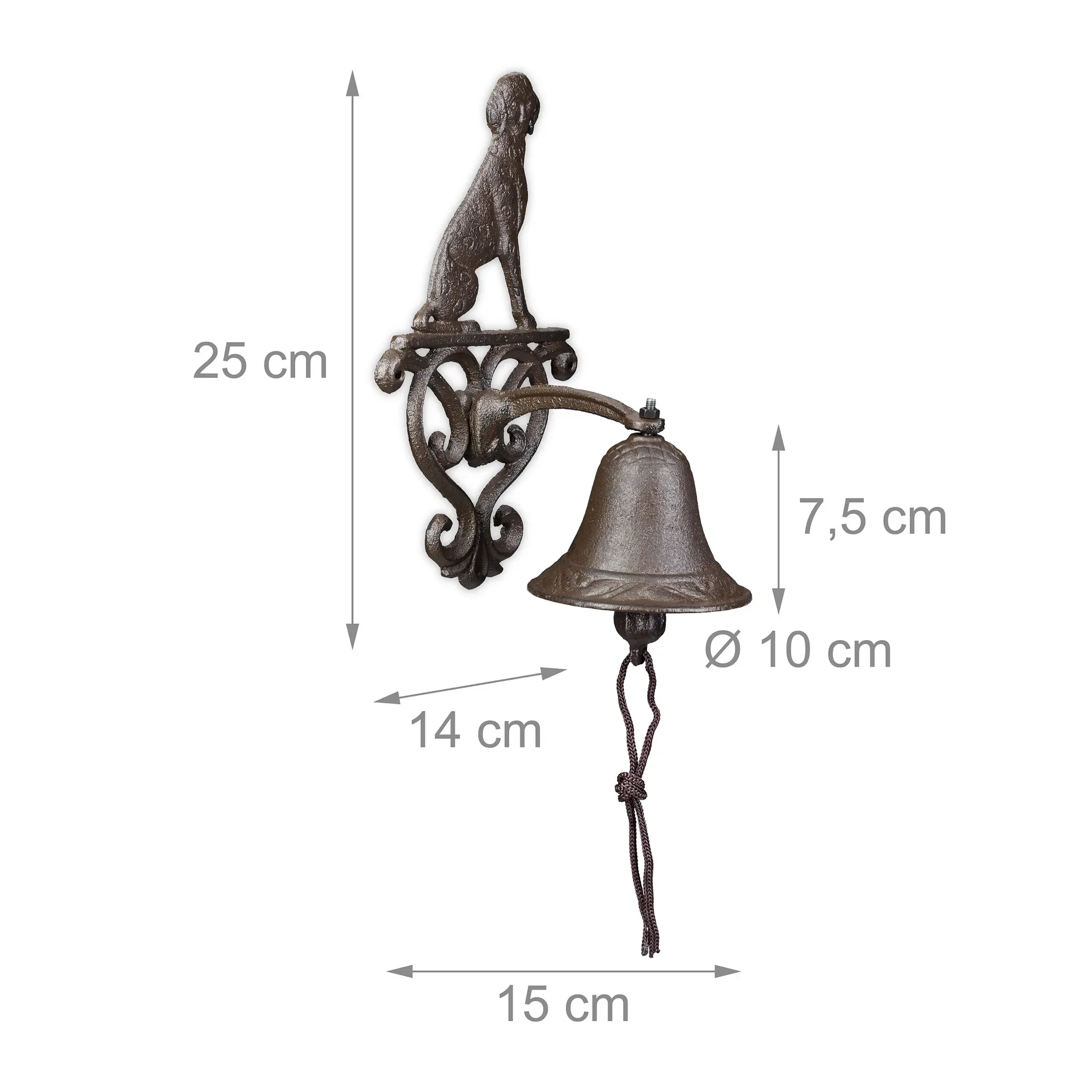 relaxdays Türglocke aus Gusseisen – Hund, Braun