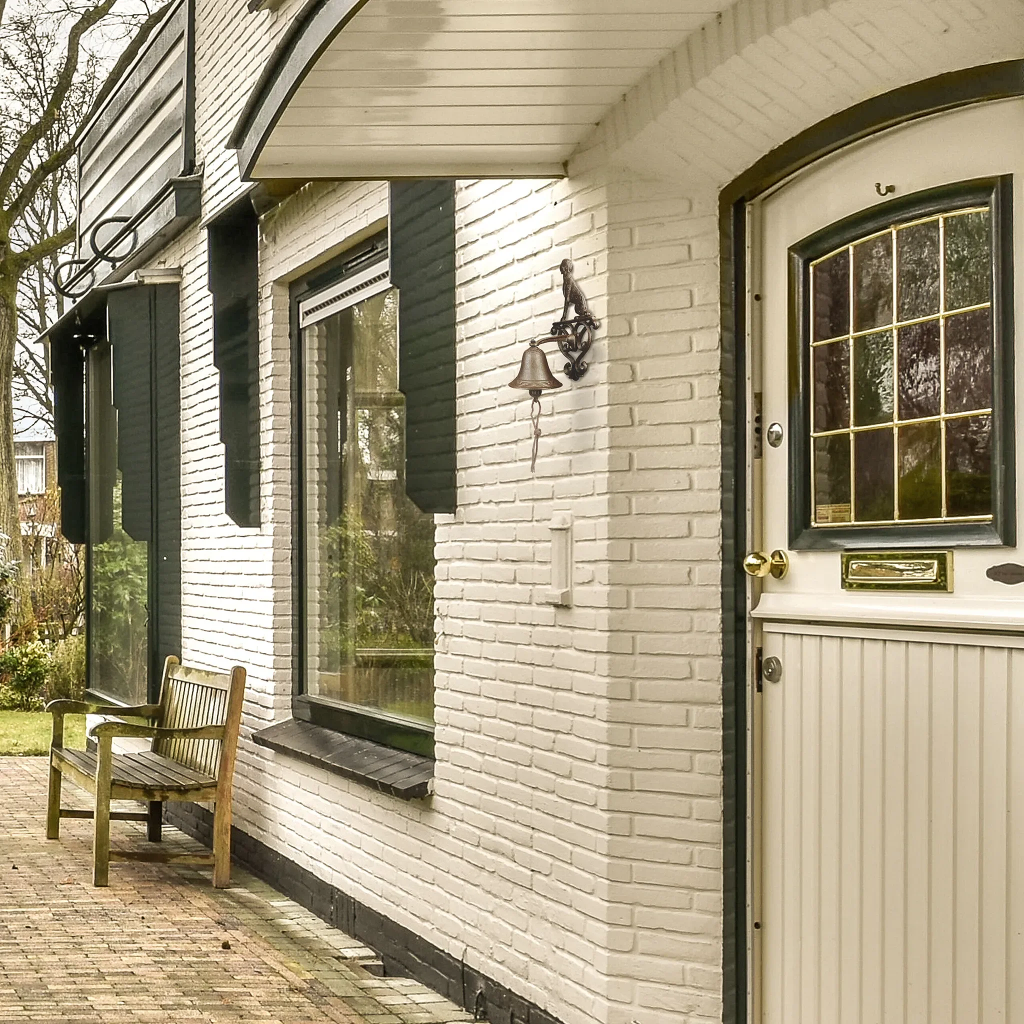 Vintage-Deko-Highlight mit einfacher Montage. Die braune Metallglocke verleiht dem Eingangsbereich dekorativen Charme und ist ein auffälliger Blickfang.